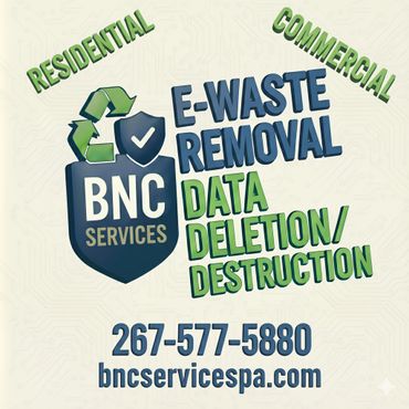 At BNC Services, we are dedicated to providing top-notch E-Waste removal, secure onsite data deletion/destruction, scrap metal pickup as well as providing junk removal solutions for our community. Unwanted electronics is our specialty. Our mission is to make your space cleaner and clutter-free, ensuring a stress-free experience for all. Punctuality is a priority for us. We do everything possible to be on time and hassle free.